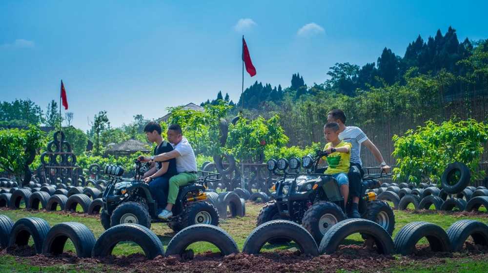 度假村里,溪水桃林、茶亭樓閣、菜田果園、水上樂園、主題客棧,處處相映成趣、美不勝收,讓您夢回田園、暢享鄉野生活。