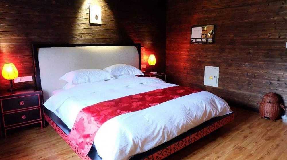 度假村小亭子、宴會廳、木屋別墅區,據說這里有6棟木屋,在一個小院子里連成一排,建筑采用木料、木地板、木板墻等,一些中等空間的房屋建設室內設計采用的是“榻榻米”的設計方案。一張一米八的大床躺上去,想咋滾就咋滾 哈哈~