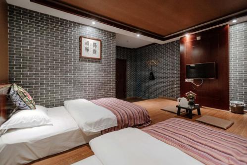 對濃郁的歷史文化特色進行挖掘整理,再現歷史風韻,賦予主題酒店空間極強的生命力、感染力,這樣的懷舊尋古是酒店空間設計中經常運用的主題。設計者在酒店建筑了一個古代世界,以時光倒流般的心理感受作為吸引游客的主要賣點,以個性的格調突破了室內空間的因循守舊,青灰色石板鋪設的地面,拾階而上后便是蜿蜒的廊道。顧客一走進酒店,就能切身感受到歷史文化的濃郁氛圍。
