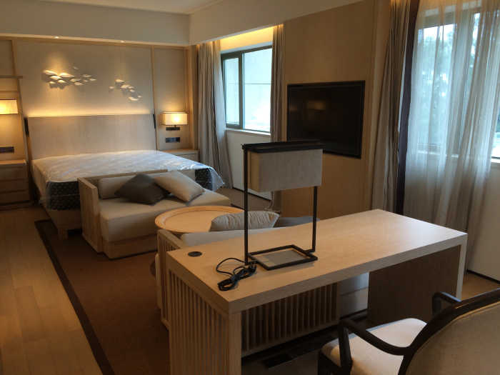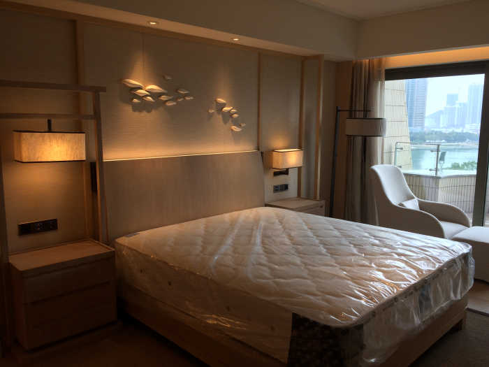 保險箱如在衣柜里不宜設計得太高,以客人完全下蹲能使用為宜,千萬不要設計在彎腰的地方,不然客人會感到疲累;酒柜燒開水的插座不要離臺面太近,起碼要有50~60㎝的距離,不然,插入插座時,由于插座的尾線是硬質的不能彎曲而不能使用;酒店裝修位于海邊度假的酒店客房的墻紙最好采用墻布,有露臺的要做好。